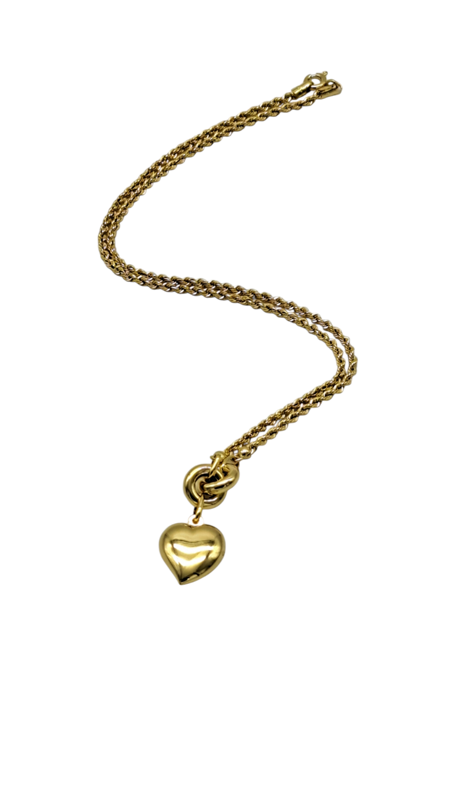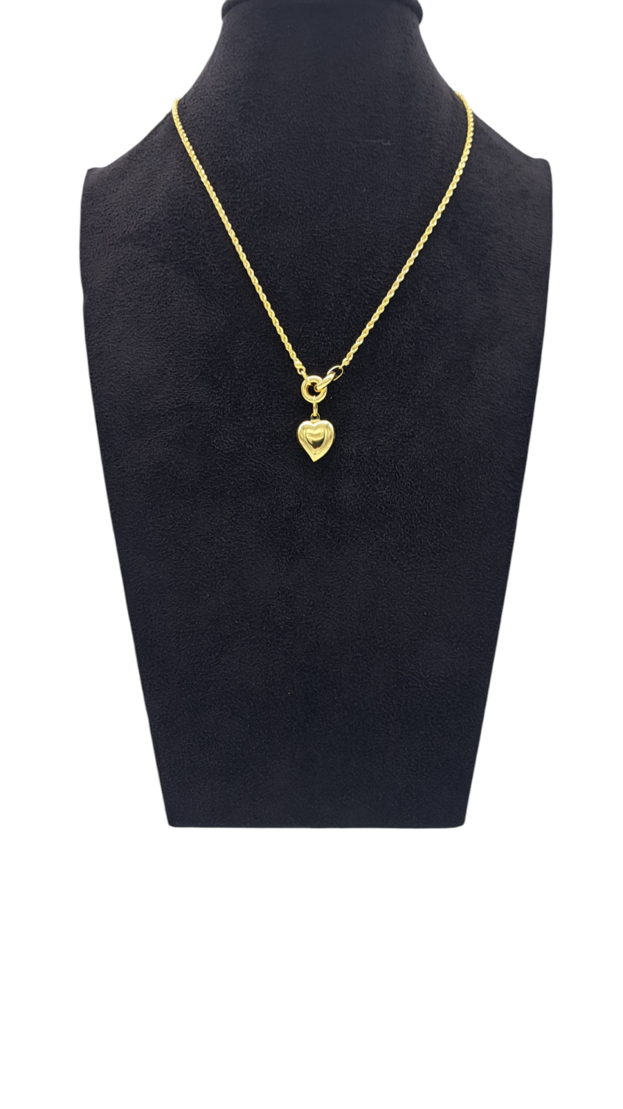 Collana in oro 9 carati (375‰) caratterizzata da un pendente a forma di cuore, realizzato con una finitura lucida che esalta la luminosità del gioiello. La catenaa corda, di struttura fine e delicata, si integra armoniosamente con il pendente, conferendo al complesso un aspetto elegante e raffinato. La lavorazione artigianale assicura una qualità superiore, mentre il design semplice ma significativo rende questo gioiello adatto a diverse occasioni, dall'uso quotidiano a momenti speciali. La combinazione di materiali di alta qualità e un design intramontabile ne fanno un accessorio versatile per una clientela esigente.