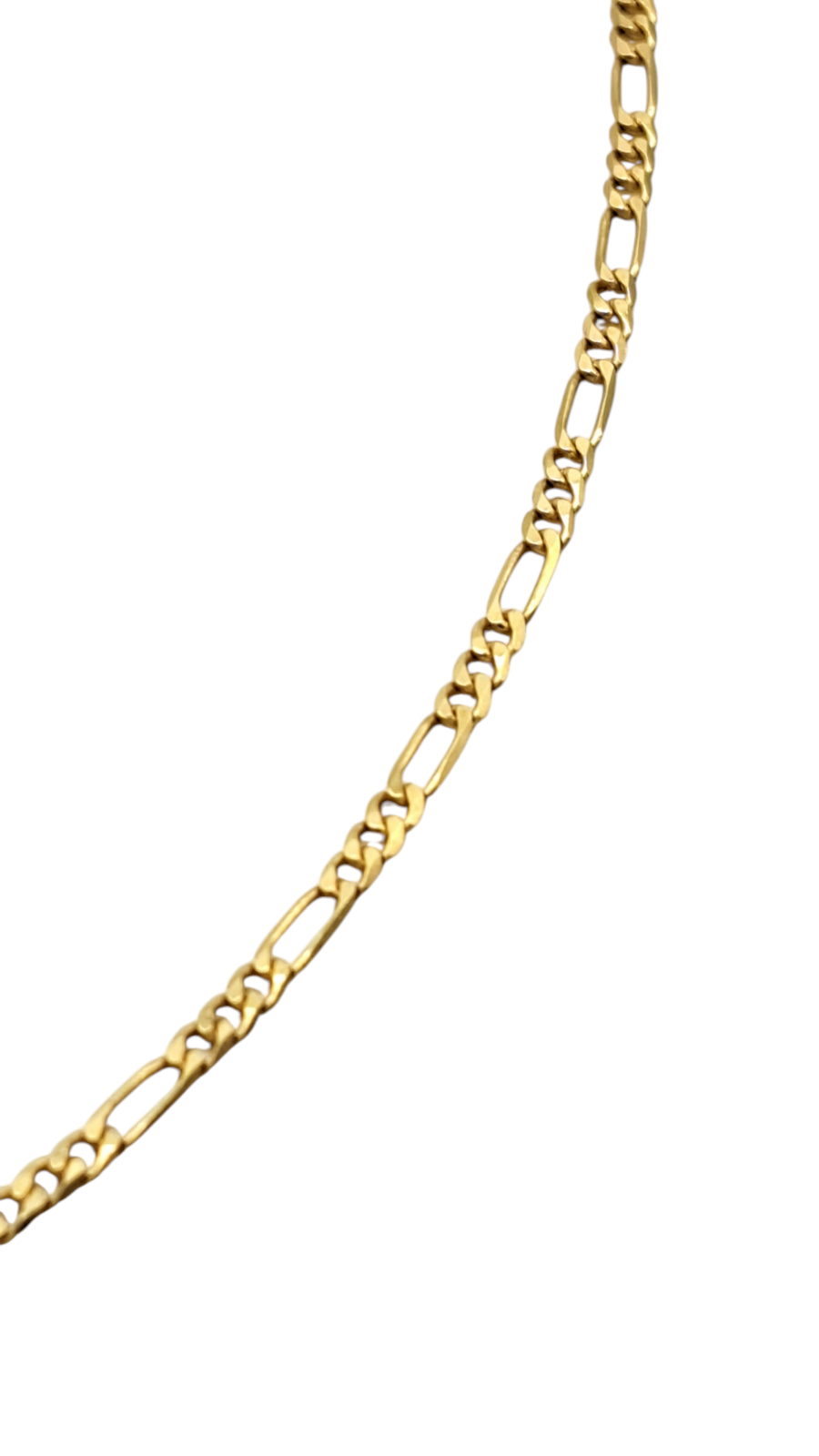La catena maglia 3+1 presenta una struttura robusta e raffinata, caratterizzata da una combinazione di maglie piatte e ovali che si intrecciano con precisione artigianale. Con una larghezza di 3 mm, il design offre un equilibrio perfetto tra solidità e leggerezza, rendendola adatta a diverse applicazioni nel settore della gioielleria maschile. La lavorazione garantisce una finitura liscia e lucente, valorizzando l'estetica del gioiello e assicurando al contempo una resistenza nel tempo.