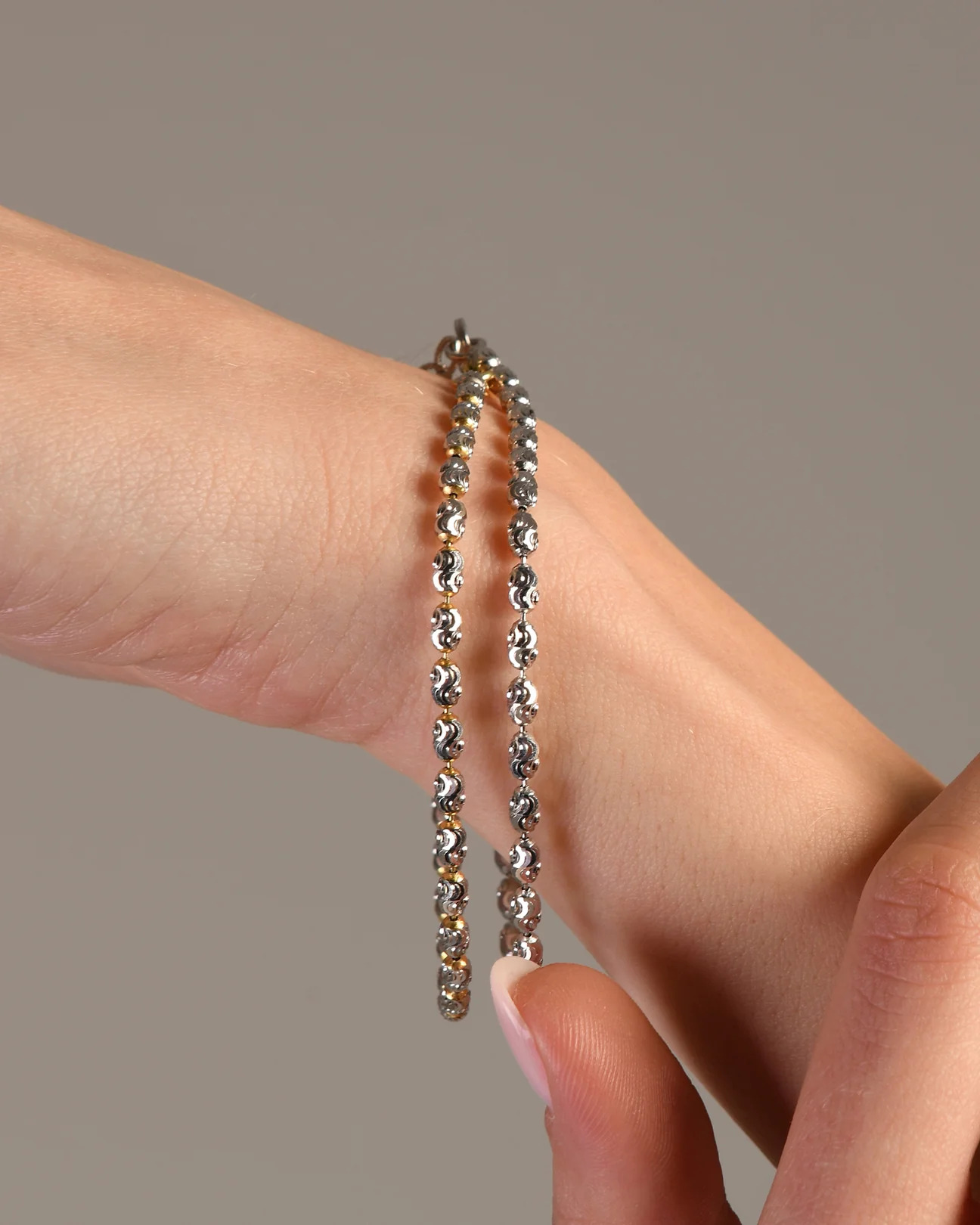 Bracciale in argento con catena fatta di elementi ovali diamantati per una brillantezza che dura nel tempo.